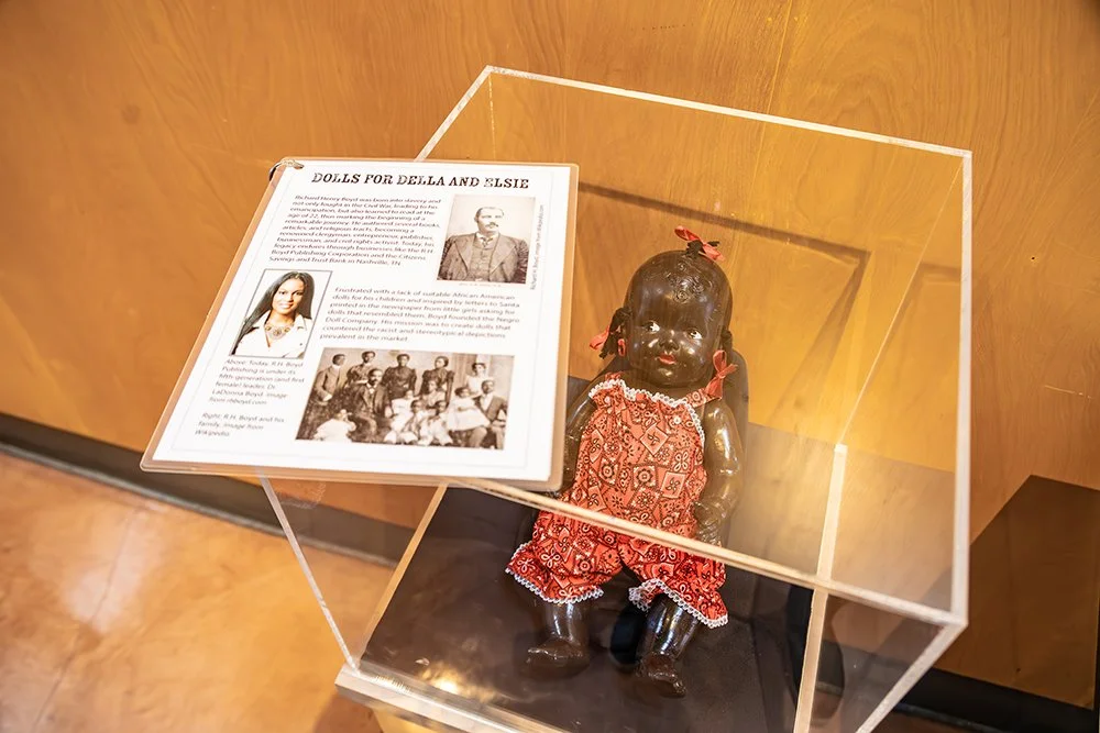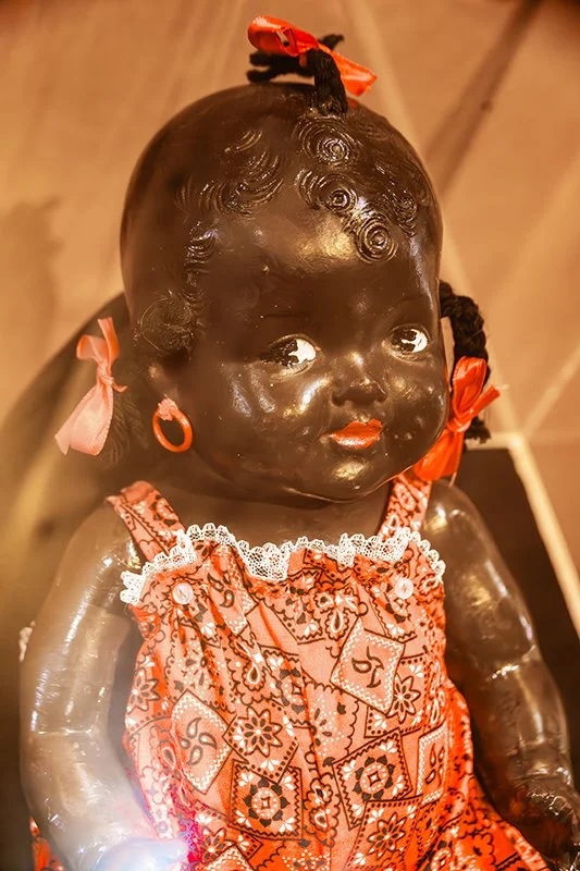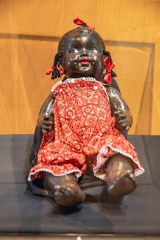 We were excited to discover an adorable doll in Turtle Bay’s Permanent Collection and learn how it connects to a larger, more significant story. Museum records indicate that this composition doll was made in the 1930s and restored in 1975. During the restoration, she received new clothing and accessories as well as repairs to her broken hand and damaged skin. We believe she is either an Effanbee brand doll or an off-brand duplication. While her hair and facial features suggest she could be an Effanbee, the restoration may have obscured any identifying markings normally occurring on dolls of this age. The Effanbee Doll Company, whose motto was “Dolls that Touch Your Heart,” incorporated dark-skinned dolls into its collection shortly after its founding in 1912.